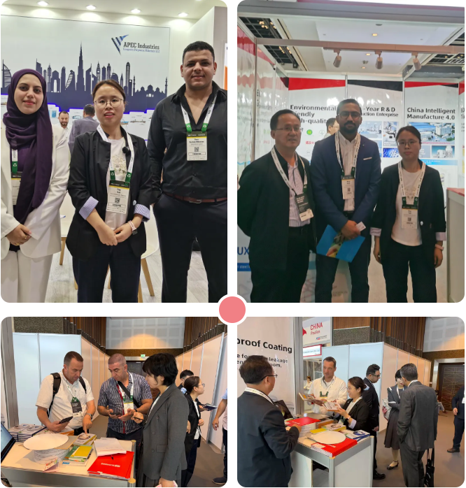 更令人眼前一亮的是生态家园的个性化创新产品。针对中东地区高温、高湿的气候特点,无机纳米涂料、耐水防霉腻子膏、透明防水胶等特色产品精准直击市场痛点,其优异的耐候性、防霉性与环保性能,完美契合当地高端住宅与商业项目的严苛需求。一位来自沙特的采购商表示:“生态家园的产品不仅种类齐全,更能解决我们在实际施工中遇到的诸多问题,是极具合作价值的中国品牌。”